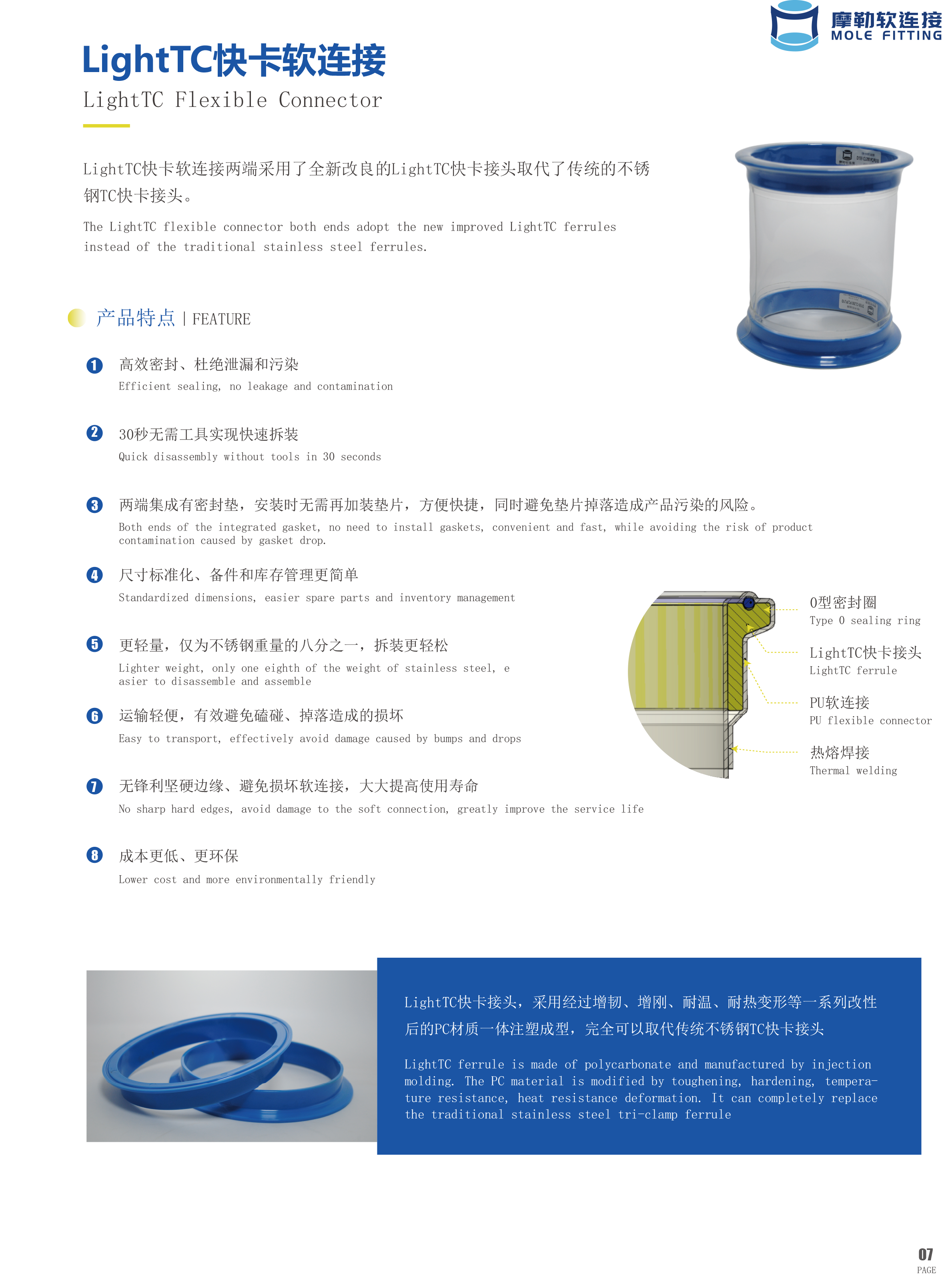 1、更輕量,僅為不銹鋼重量的八分之一,拆裝更輕松2、運輸輕便,有效避免磕碰、掉落造成的損壞3、無鋒利堅硬邊緣、避免損壞軟連接,大大提高使用壽命4、成本更低、更環(huán)保